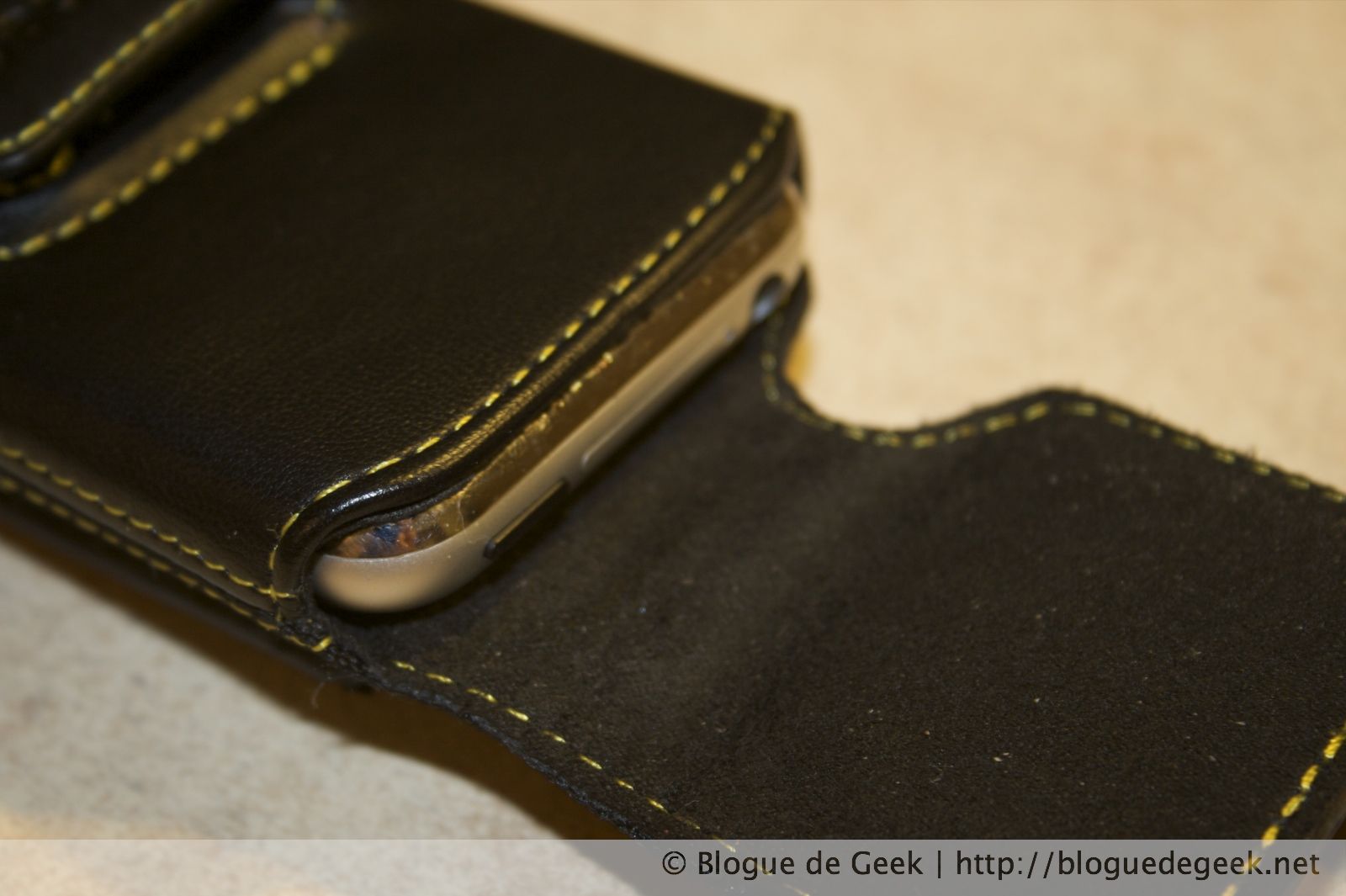 L’intérieur de l’étui est fait d’une matière qui ressemble à un chamois et Speck dit qu’il permet de nettoyer l’écran. Garder l’iPhone exempt de poussières oui, mais il ne vient pas à bout des traces de doigts. N’empêche que c’est quand même une bonne idée de mettre ce type de revêtement.
