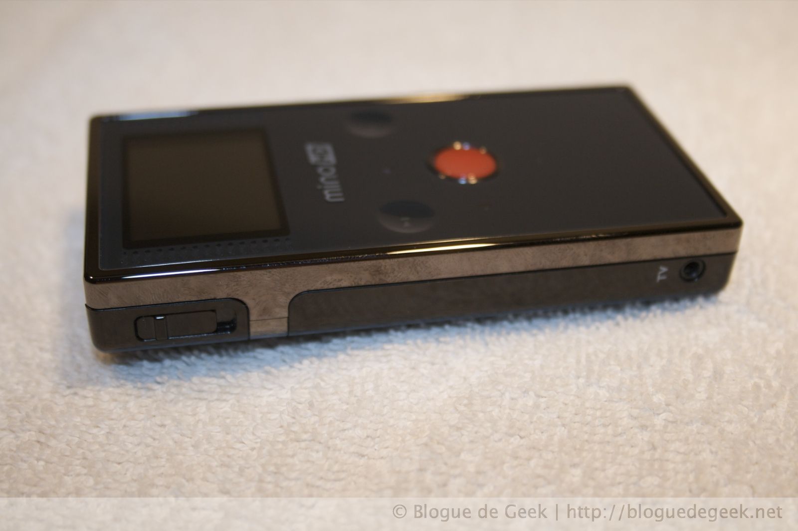 Le Mino HD est le modèle geek-chic des Flip avec son look sombre et sa bordure chromée. Il possède aussi des boutons qui réagissent au touché, je crois que ce n’est que de faux boutons qui détectent la présence de doigts et non une surface tactile comme sur le iPhone. Sur le devant de l’appareil, nous avons donc le gros bouton rouge qui permet d’activer et d’arrêter l’enregistrement, un bouton lecture et un bouton corbeille. Vous devinez leurs fonctions? Contrairement à d’autres caméras de poche, Pure Digital à porter attention aux petits détails qui les bienvenus. Vous trouverez un emplacement pour trépied de grandeur standard, une sortie télévision (câble inclus) et la fonctionnalité qui a fait la réputation des Flips, un connecteur USB qui se déploie du dessus de l’appareil lorsque vous appuyez sur un bouton!
