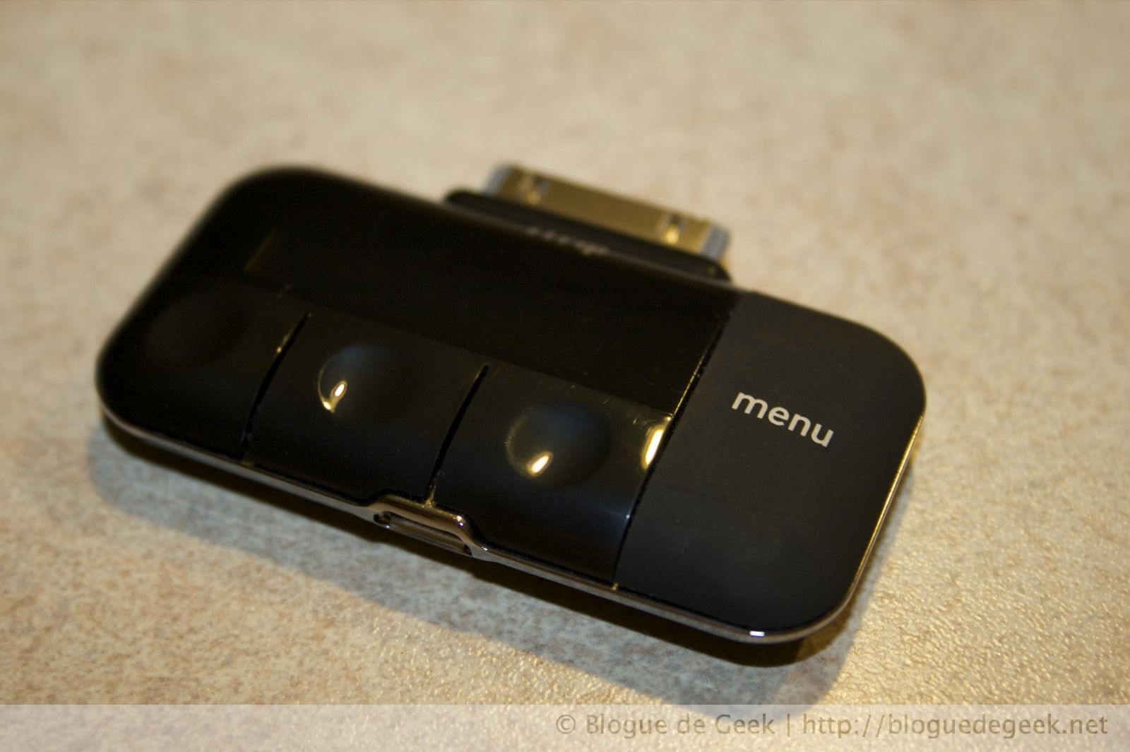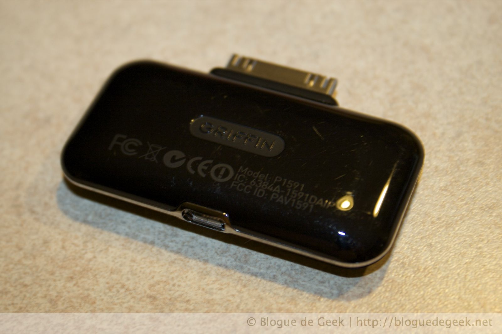 Le iTrip fonctionne à partir de la pile de votre iPhone mais peu être rechargé grâce au port micro-USB B. Il faut dire que j’ai trouvé quelque peu bizarre la construction du iTrip. Entre les boutons, la lumière de l’écran rétro-éclairé se faufile et on réalise que les boutons sont eux même la surface extérieure. Le tout ne semble pas particulièrement fragile et j’imagine que c’est comme ça pour qu’un maximum d’onde FM puissent passer.